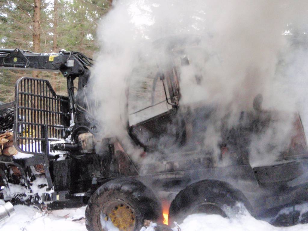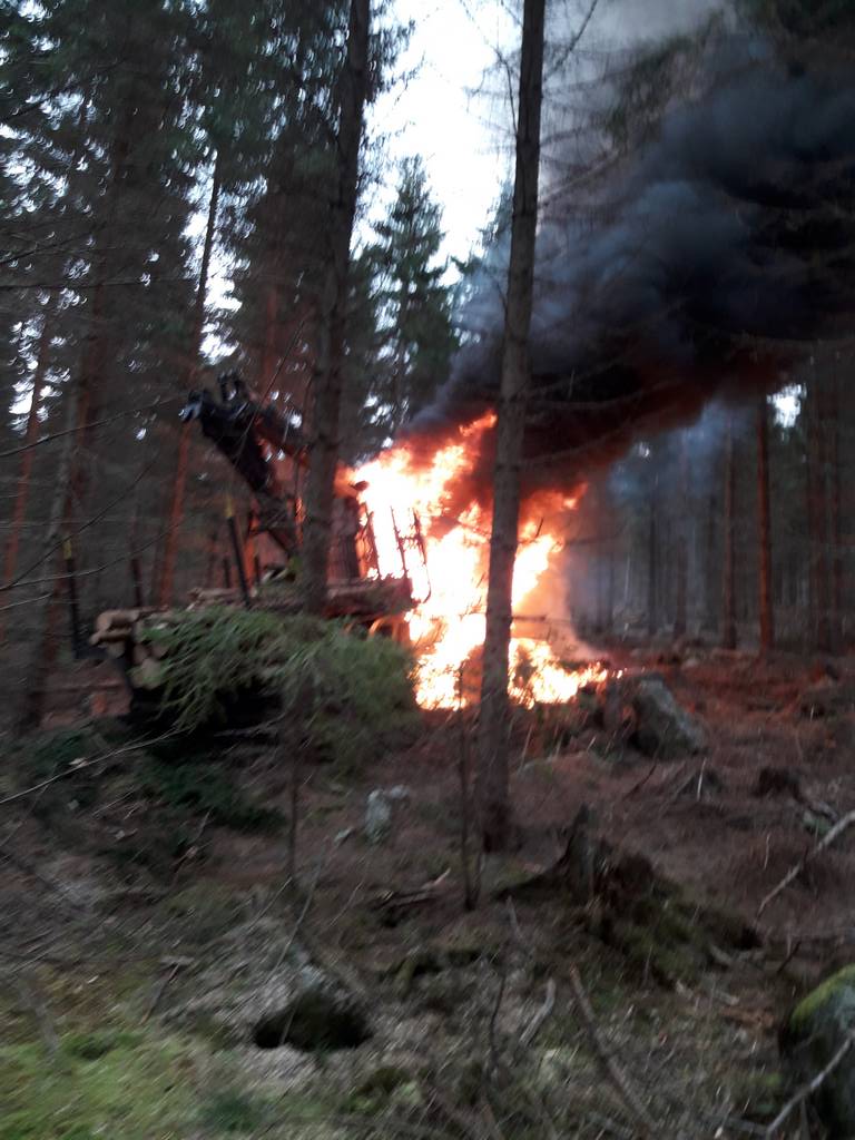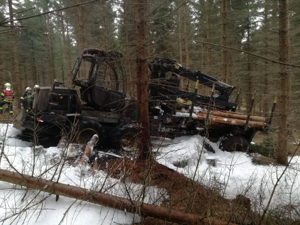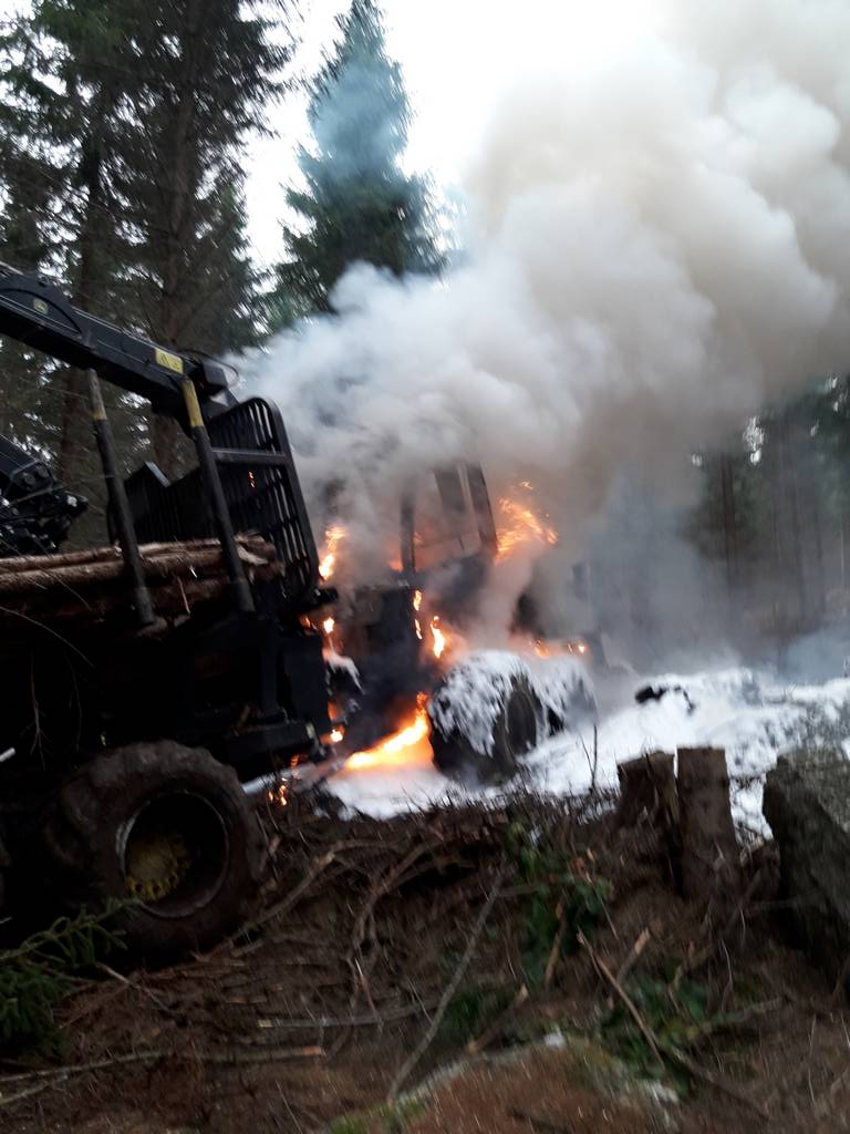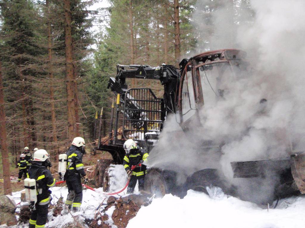 Die Feuerwehren Sandl und Pürstling wurden zum Brand eines Forwarders alarmiert.