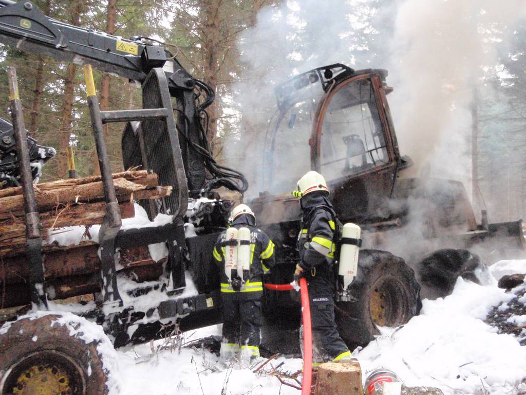 Aufgrund der exponierten Lage im Forstgebiet wurde umgehend die Feuerwehr Windhaag nach alarmiert. Nach dem Eintreffen am Einsatzort wurde die Brandbekämpfung mittels Mittelschaumrohr vom AS Trupp durchgeführt. Anschließend wurde die Maschine mit Wasser gekühlt. Da es im Bereich der Einsatzstelle keine Wasserentnahmestellen gibt wurde die Wasserversorgung mittels Güllefässer sichergestellt.
