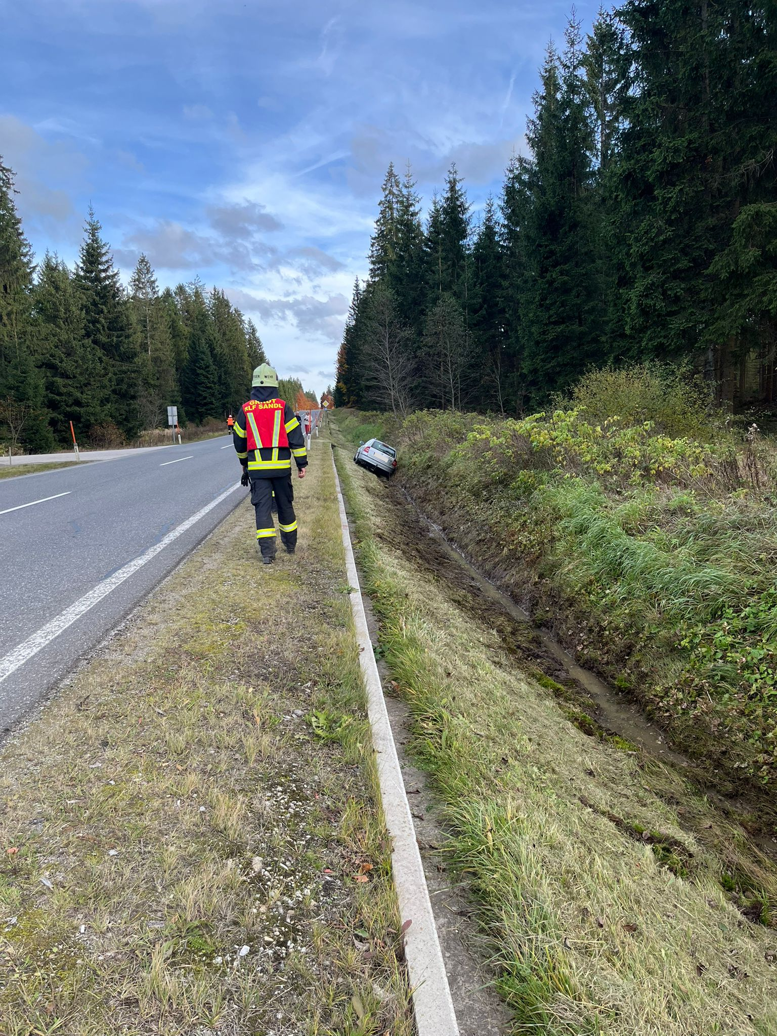Heute um 15:59 Uhr wurden wir zu einem Einsatz alarmiert. Ein Pkw war auf der B38 Richtung Niederösterreich von der Fahrbahn abgekommen.