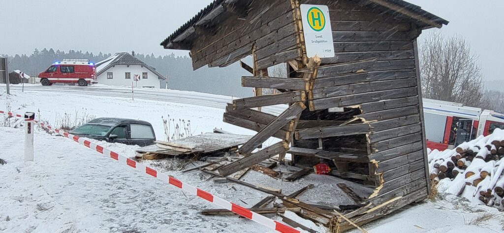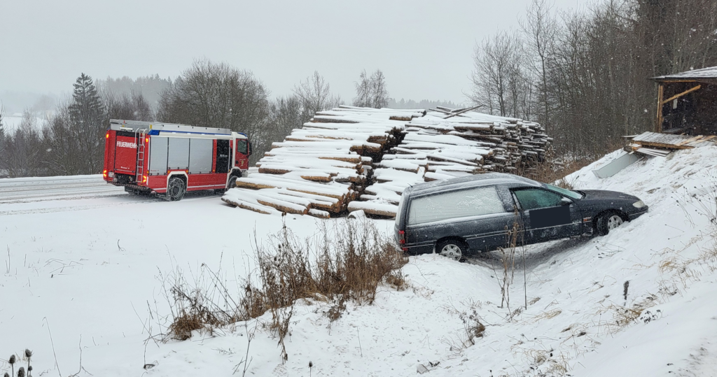 Heute um 09:40 Uhr wurden wir zu einem Einsatz auf der B38 mit dem Stichwort „Bergung PKW“ alarmiert. Ein Kombi war auf der schneeglatten Fahrbahn ins Schleudern geraten, kollidierte mit einer Bushaltestelle sowie einem Stromkasten und sprang anschließend über die Böschung. Das Fahrzeug kam schließlich auf einem Erdwall zum Stillstand.