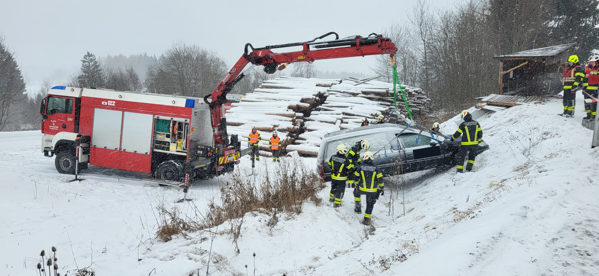 Da eine Bergung mittels Seil nicht möglich war, wurde das SRF der FF Freistadt nachalarmiert. Dieses konnte das Fahrzeug erfolgreich bergen.