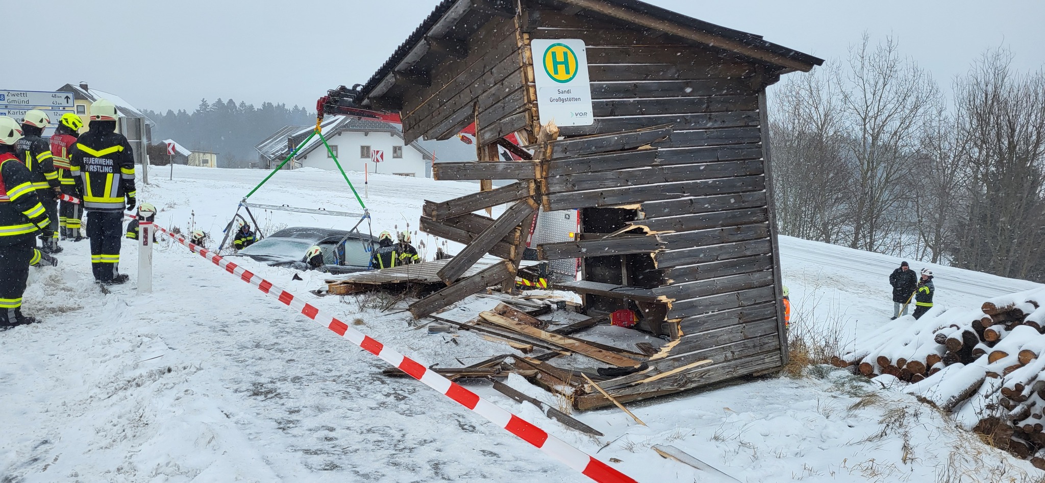 Heute um 09:40 Uhr wurden wir zu einem Einsatz auf der B38 mit dem Stichwort „Bergung PKW“ alarmiert. Ein Kombi war auf der schneeglatten Fahrbahn ins Schleudern geraten, kollidierte mit einer Bushaltestelle sowie einem Stromkasten und sprang anschließend über die Böschung. Das Fahrzeug kam schließlich auf einem Erdwall zum Stillstand.