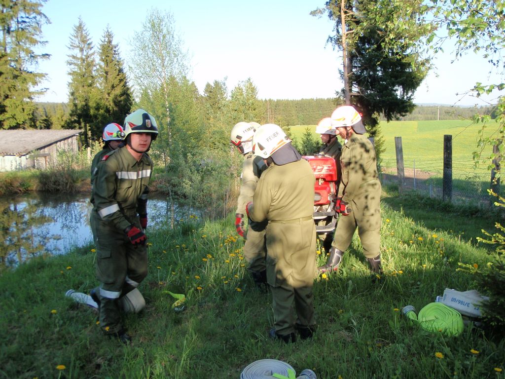 Die Kameraden der Gruppe 2 übten die Löschwasserförderung mittels Tragkraftspritze. Übungsobjekt war die Tischlerei Riepl.