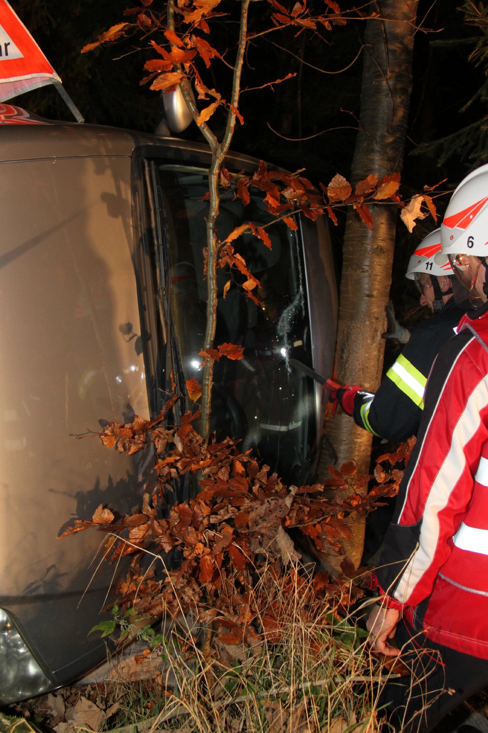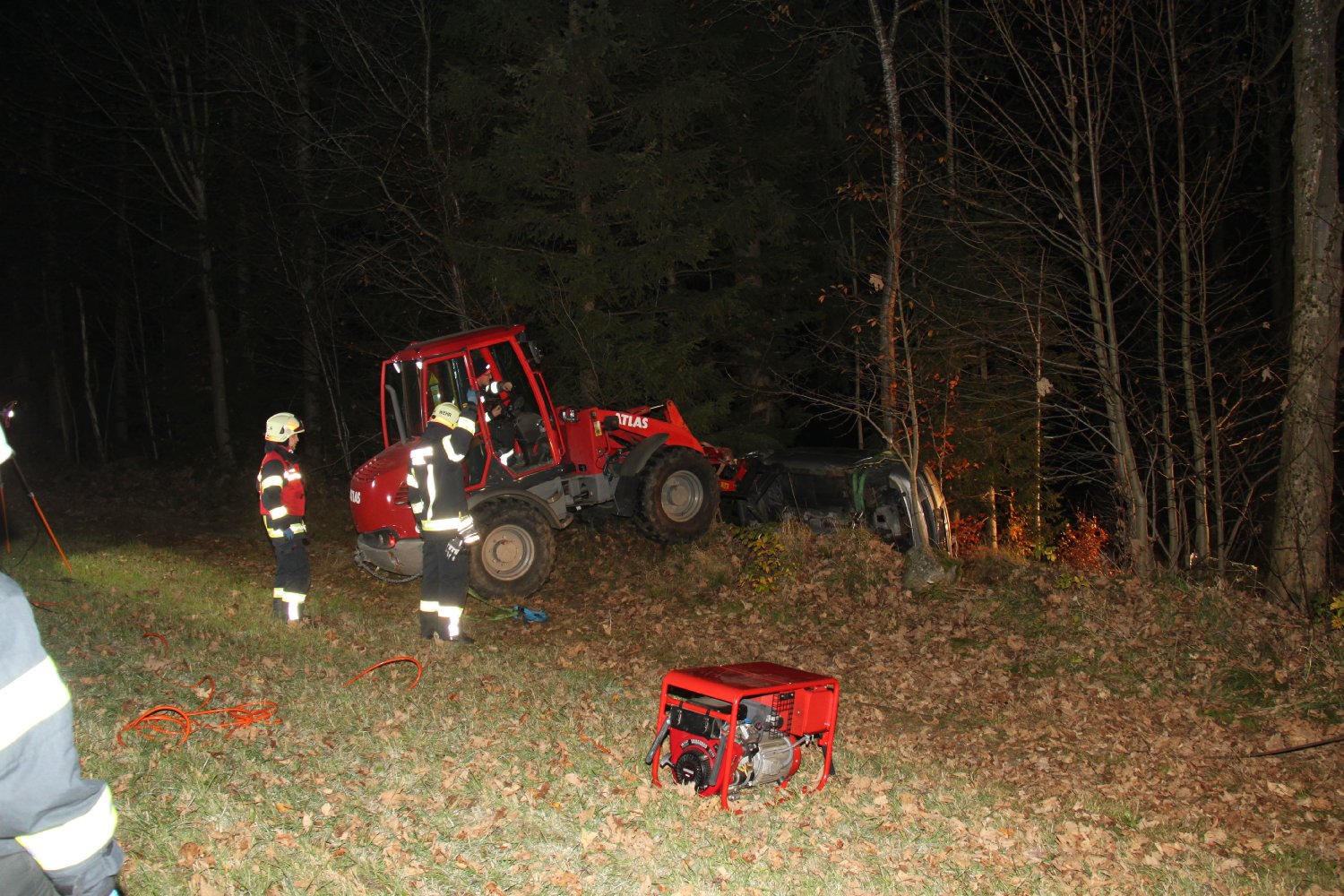Die Übungsannahme war eine Fahrzeugbergung, jedoch stellte sich bei der Lageerkundung heraus dass noch eine Person im Fahrzeug eingeklemmt war. Die um diese Jahreszeit bald einsetzende Dunkelheit war eine zusätzliche Herausforderung. Daher wurde die Unfallstelle mit Lichtmasten und Lichtflutern ausgeleuchtet. Während mit den Rettungsarbeiten begonnen wurde erschwerte ein aufgebrachter Schauspieler die Übung mehrfach. Die etwas anspruchsvolle Lage des Fahrzeugs und die damit verbundenen Arbeiten wurden von den Teilnehmern wie gewohnt erledigt. Danke an alle Kameraden für die zahlreiche Teilnahme und an den Gruppenkommandanten für die Ausarbeitung dieser fordernden Übung!
