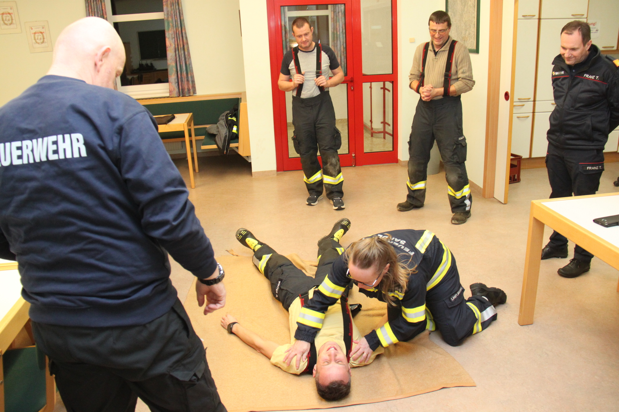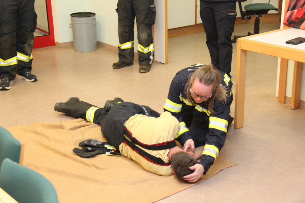 In der Monatsübung Dezember stand der Feuermedizinische Dienst (FMD) im Mittelpunkt. Wir frischten die wichtigsten Maßnahmen zur Reanimation auf und trainierten dabei intensiv Herzdruckmassage und Beatmung.