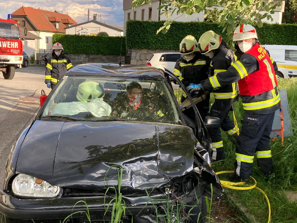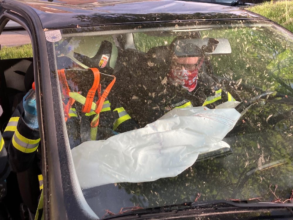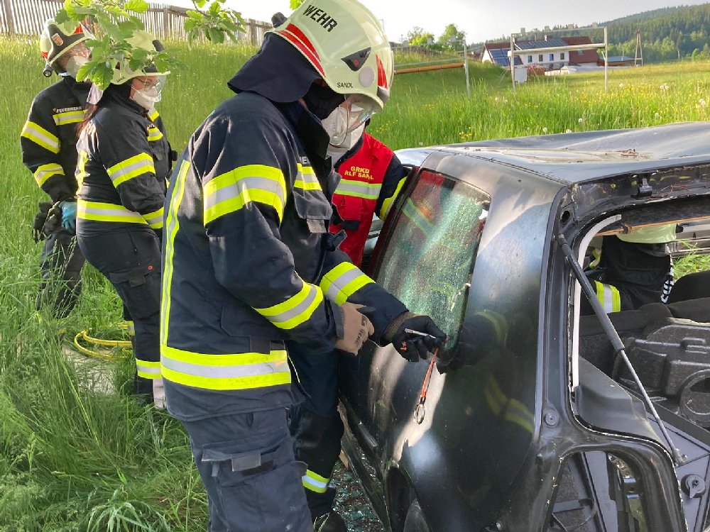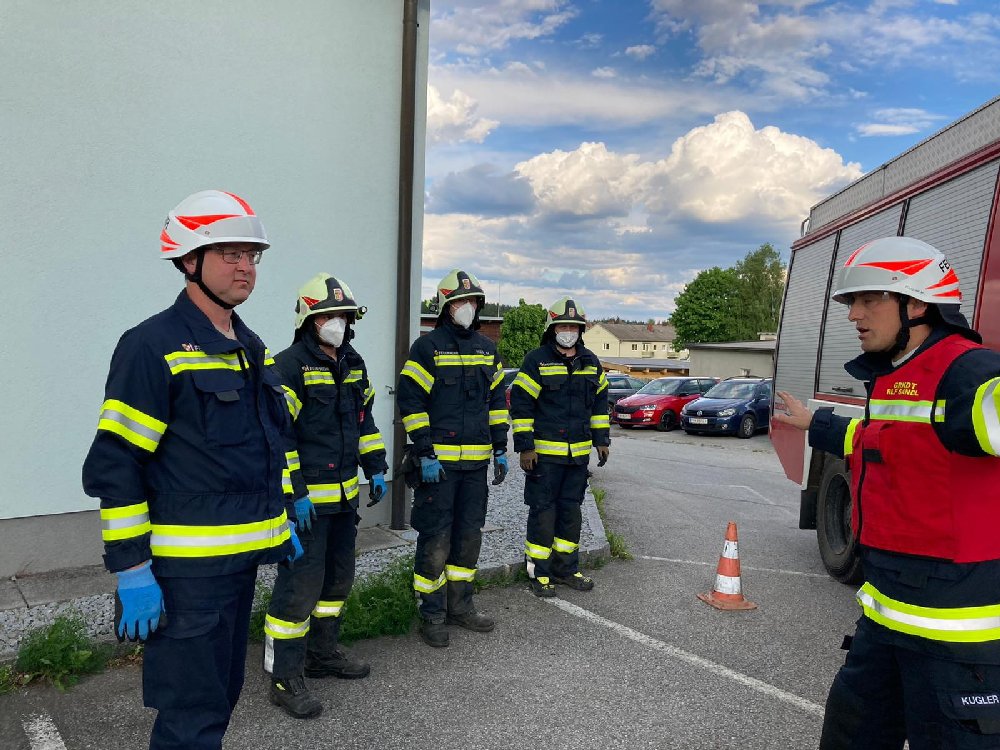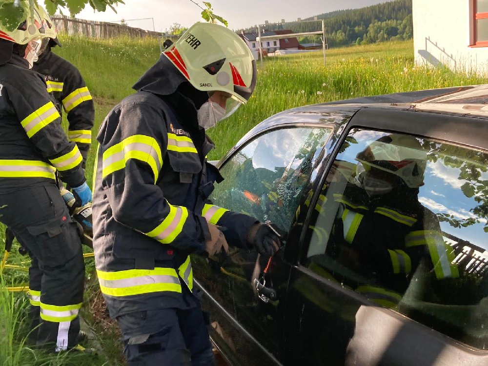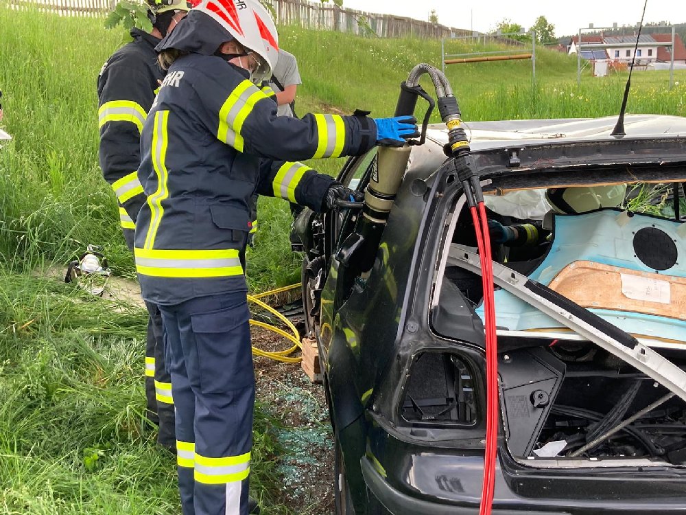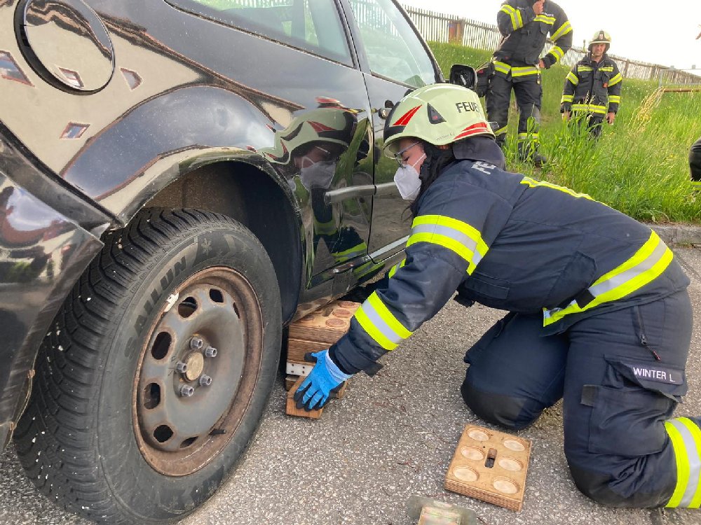 Nach dem Befehl „eingeschlossene Person im KFZ“ starteten 14 KameradenInnen mit dem Retten des Verletzten aus dem verunfallten PKW. Die Übung wurde erfolgreich abgearbeitet.
