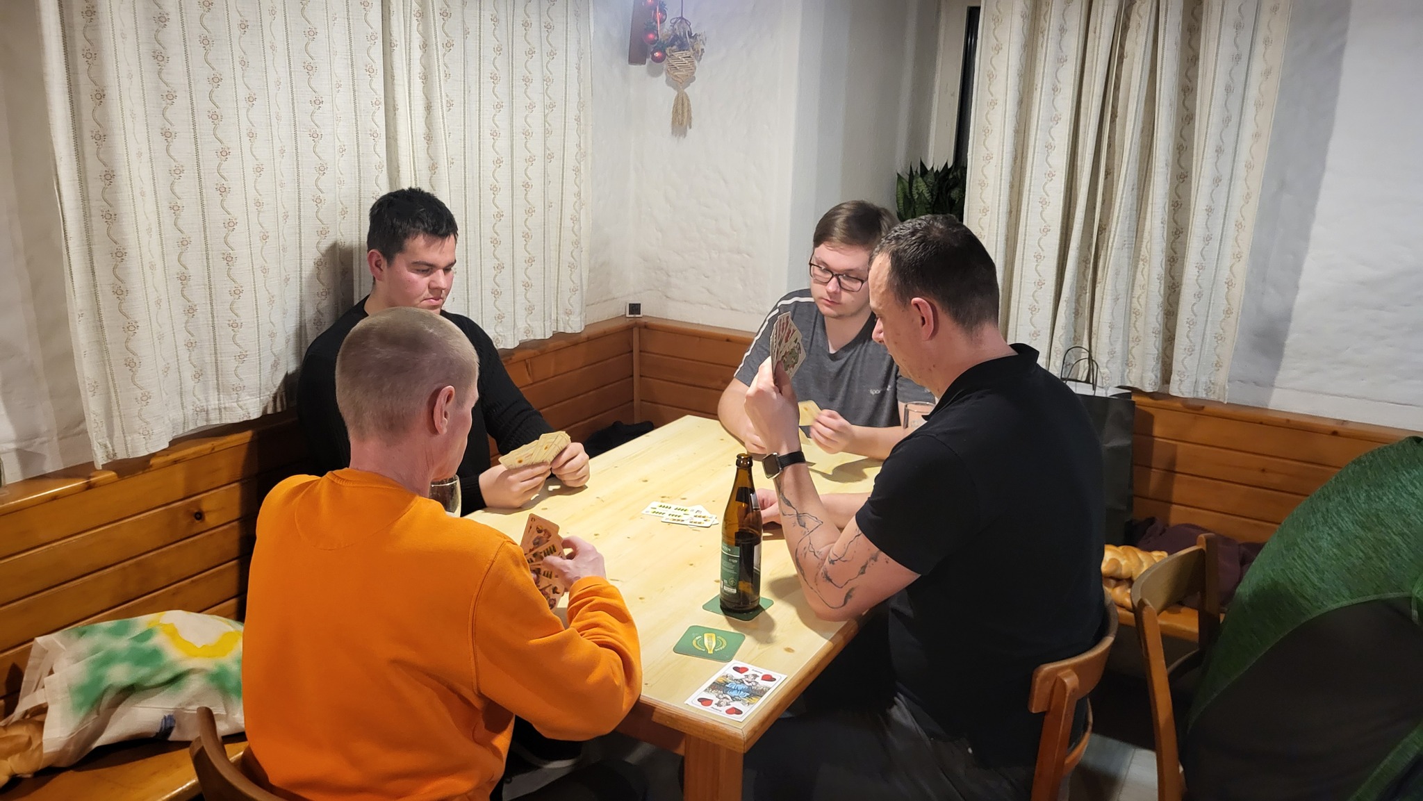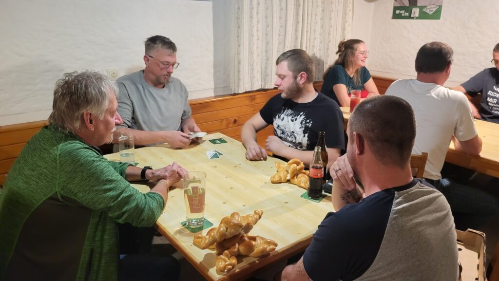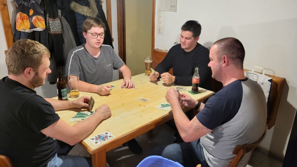 In bester Gesellschaft und mit guter Laune starteten wir gemeinsam in den Abend. Insgesamt standen 120 Sterne auf dem Spiel, die Runde für Runde gewonnen oder verloren werden konnten. Das Besondere an unserem Sternspielen ist dabei die stetig wechselnde Gruppenzusammenstellung: Nach jeder Runde wurden die Teams neu ausgelost. So ergab sich für jede:n die Gelegenheit, mit unterschiedlichen Kamerad:innen zu spielen – was nicht nur für Abwechslung sorgte, sondern auch für zahlreiche Gespräche und Lacher.